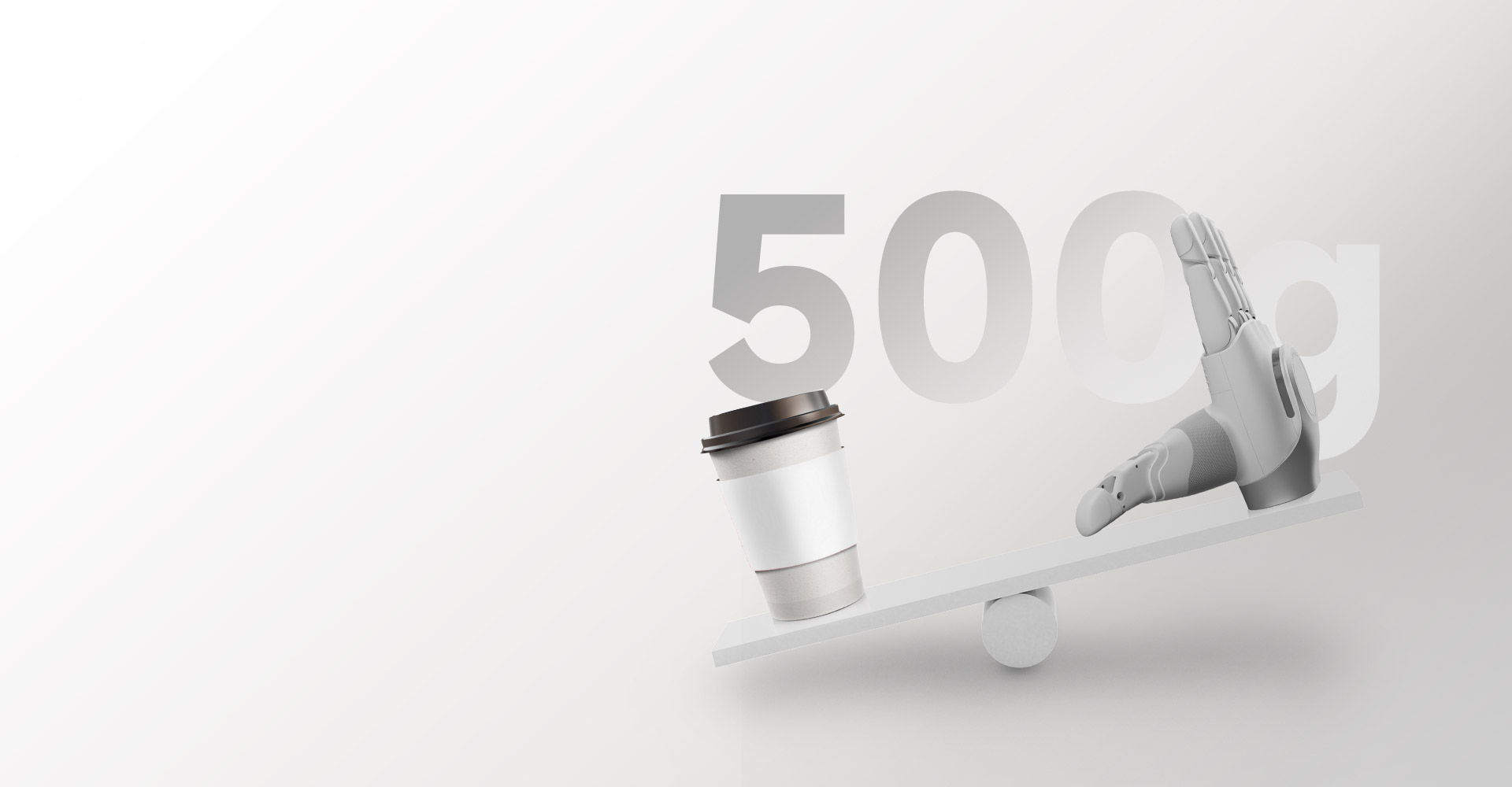 全長180mm、重量わずか500g。多様なヒューマノイドロボットに適合する理想的な両手
